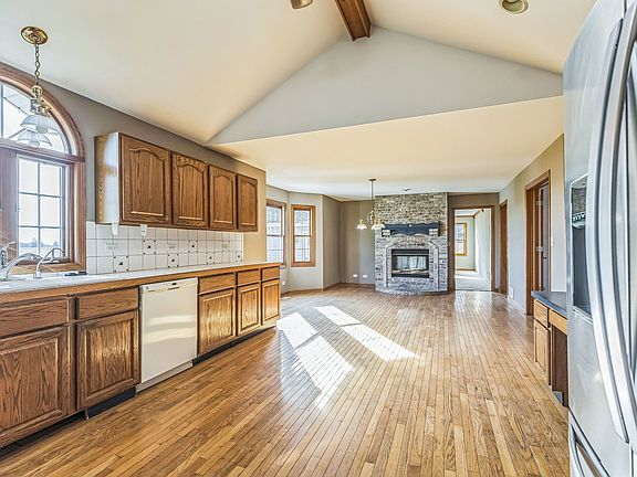Large 2 story home with lots of extra rooms. 13 x 18 master bedroom with his and hers closets, full bathroom, a whirlpool tub and walk in shower. A double sided gas fireplace allows you to heat kitchen and the living room at the same time. Large bonus room that can be used as a hang out, office, or rec room. The possibilities are endless. Full unfinished basement allows for plenty of storage space. Brand new carpet and paint throughout in 2024. Located  within walking distance to downtown Hinckley, schools, parks, and restaurants. All room dimensions are estimated, please do your due diligence.