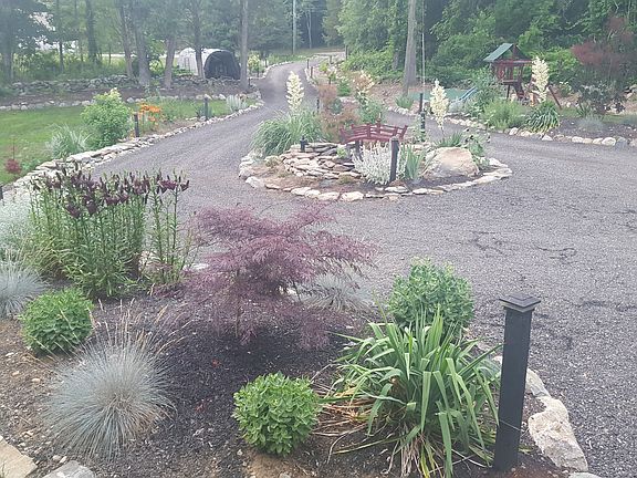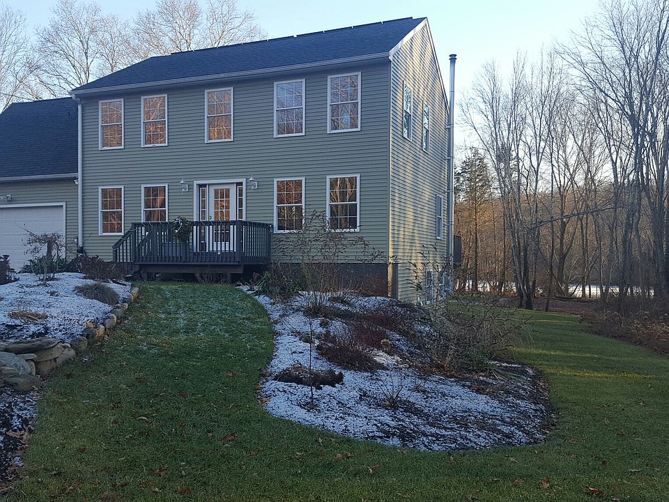 Built on 4.5 PRIVATE acres, granite, hardwoods, his n hers walk-in closets, 2.5 baths, wood stove in Walk-out basement, 2 car garage with 24' x 24' above, patio & deck areas, professional landscaping and solar panels!! This waterfront property also has a pond and wetlands - offers tranquility.