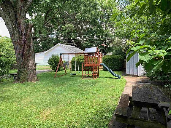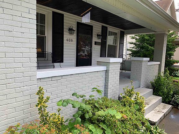This 3 bedroom and 2 bath home is move in ready. Located within 3 blocks of the University of Evansville, and just across the street from the iconic "Roseanne TV Show house", it comes with many updates including a new roof in 2016, new HVAC system in 2018, new kitchen cabinets and butcher block counter tops, new 3 panel interior doors, and a new second bath off the master bedroom. The owners have updated much of the trim work and floor covering. Replacement windows throughout the house. Lots of storage, including plenty of closet space and a 3/4 basement. The basement is dry and includes a long work bench in a large workshop area. The outside of the house includes a beautiful front porch with landscaping in the front and a fenced in yard in the back with a children's playground set included. There is an outbuilding for outside storage. The seller offers a $485 one year 2-10 Home Warranty.
