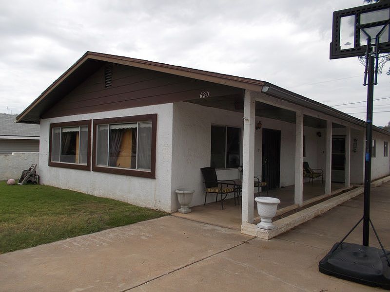 Comfortable and Spacious Home in Globe. Located in central area close to schools and shopping. 2 bedrooms plus additional room that could be used as office or craft room. 2 full bathrooms with access to bedrooms. Living room and large family room with grand fireplace. Dining area has built-in buffet. Eat-in kitchen bar. AC. Large 2 car carport, plus cement drive through parking. Fully fenced with a front lawn, and a covered patio. Storage Shed. Call for appointment.