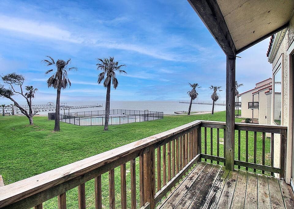 Completely remodeled corner unit with a stunning view of Aransas Bay. Beautifully furnished with granite countertops, vinyl flooring and stainless-steel appliances. You don't want to miss the opportunity on this unit! Did I mention your private staircase? Sit and relax on your covered shady deck overlooking the pool and Aransas Bay. Don't forget your private lighted fishing pier.