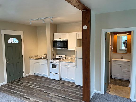 Newly updated brightly lit studio apartment ready for a new tenant. Newly updated features include furnace, floors, kitchen, bathroom, paint, & light fixtures throughout. New windows. Large closet. Off street parking included with rental of this unit. Easy access to the highway for commuters. Private porch. Landlord provides snow removal in the winter. $20 application fee that is refunded if you sign a lease. Email to get the rental application and schedule a showing! Owner pays for water, lawn care, and snow removal. Tenant pays for electricity and cable/internet.