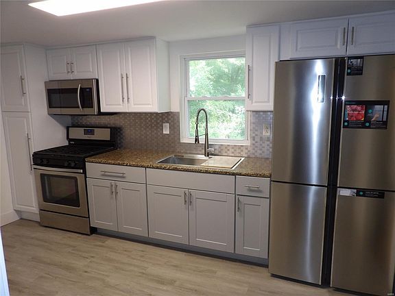 Beautifully affordable home overlooking the heart of Caseyville. Newly remodeled thru and thru. Check out the new kitchen with stainless appliances. New flooring throughout and two new bathrooms, one bath has a space age walk in shower with steam sauna. Full clean basement for all your storage needs. Seller is offering a Cinch home warranty.