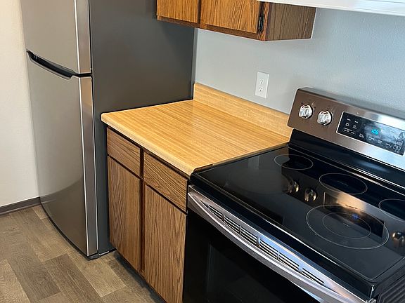 Very nice large 950 square foot apartment. New flooring in the kitchen, bathroom, and laundry room. Totally remodeled bathroom. New vanity and sink & faucet. New toilet all new bath hardware. New paint everywhere. New stainless refrigerator, newer smooth top stainless stove, dishwasher. Ceiling fans in the dining room and master bedroom. Assigned parking (2) spots. Washer and dryer hook-ups. Very quiet neighbors. This is an upper unit in a 4plex. Tenant pays electric, gas, water. Landlord will pay trash and maintain the yard. REQUIREMENTS: 2 years of rental history Household income needs to be 3 x monthly rent per month verified. The water is on one large meter you will pay $40.00 per month for water.