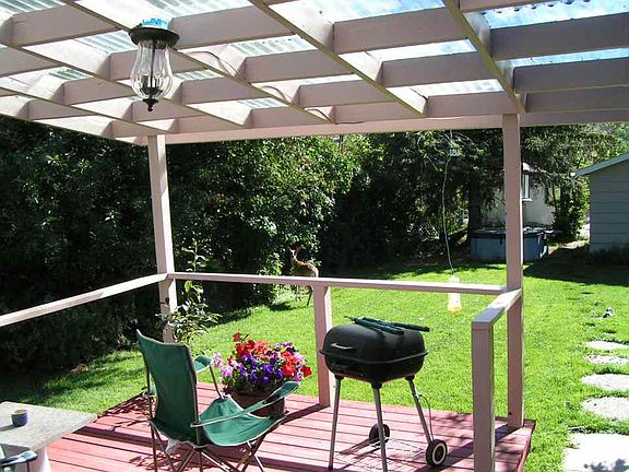 This home was built in 1900 in the original downtown of Red Lodge in the Yugoslavian district with Moose tracks in the sidewalk! The entrance is right off the sidewalk, without any setback and the south side of the homes sits right on the property line. The neighbor to the south of the property built his home in the alley and the lot to the north is extra wide with the home sitting at the far end, so there is room all around, which is very rare indeed in downtown Red Lodge and makes the home bright and sunny all day long! The home has been remodeled countless times and last time in 2011 when it received new Marvin double pane windows and new paint on the outside. Our home features a gas burning stove, hot water heat, wood laminate flooring and a metal roof on home and garage. In the kitchen we have knotty hickory cabinets with an island and a tiled counter top, a glass top range with self-cleaning oven, dishwasher and a refrigerator with a freezer drawer and digital readout. The front door invites you in with a large beveled glass insert and a Pella Storm door. There is a room air conditioner built into the living room wall, but there is also a fan in the kitchen and in the smaller bedroom. The large bedroom has good cross ventilation with a window facing south and a window facing east. The smaller bedroom closet is cedar clad. The living/dining room ceiling lights are remotely switched on and can be dimmed. A golden tub from the 70s is still there, but there is a marble sink and a stack washer/dryer in the bath. The porch also has a new fiberglass roof. The grass stays green because there is an irrigation well in the yard which can be used lavishly without running up the water costs. The double garage opens with a remote control and is tall and deep enough for two full size cars. The middle and elementary schools are just a couple of blocks to the north, along with Cafe Regis, a restaurant and health food store. Downtown is just six blocks and the public swimming pool (outdoor) 4 Blocks. The city park of Red Lodge is right along Rock Creek and only two blocks from the home. Yes, if you like to sleep with an open window, you can hear the creek rumble over the rocks! Occasional backyard visitors include six to eight does, one buck, two moose, one black bear and 22 wild Turkeys! The moose sleeps by the garage or in the front yard and in winter the deer sleep along the hedge along the north side of the property. Birds of all colors visit the bird feeder year round, they prefer hulled sunflower seeds, but in summer the bird feeder needs to be inside overnight or the little Black Bear will sit on your railing and have a feast, if it is not her than its the raccoons. $ 185,000 - Broker Owned