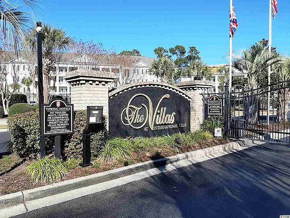 Welcome to Villas @ International Club in Murrells Inlet. A gated resort like community perfect for full time residency or a second home / golf retreat. This END UNIT 2BR/2.5Ba townhome conveys fully furnished and comes with all major kitchen appliances including washer & dryer. Being an End Unit there are additional windows on both first and second level that provide natural light and brings in the Carolina Sunshine. The first floor offers a spacious living room area, dining, kitchen, half bath and a walk in storage area beneath the staircase. Upstairs are 2 bedrooms, each with private baths and walk in closets. The Laundry is also located upstairs adjacent to the bedrooms. Just off the kitchen is a patio area that includes an attached outdoor storage closet and PVC privacy fencing. Villas at the International Club borders the International Club Golf Course, is gated and has a private pool area for residents and guest. The community is conveniently located close to the Murrells Inlet Marsh Walk, Huntington Beach State Park and Brookgreen Gardens. This home has always been a second home only, never occupied full time and never rented. A New HVAC System was installed January 2020. Don't miss it !! Call today with any questions or to schedule a time to view this exceptional home.