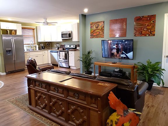 Wonderful, spacious home. Lighting throughout is beautiful; cordless blinds. Beautifully renovated kitchen, granite countertops, 3 yr old stainless appliances. Procraft cabinetry. Easy Clean windows. Hardwoods. Murphy bed downstairs lifts up to enable more space. Open downstairs: new track lighting, walkout door to backyard. Renovated bathrooms with granite countertops, new vanities, tile.Hunter fans in every room w/ remotes. New paint. Roof 5 yrs old. 4 yr old HVAC, 4 yr. old water heater.