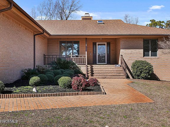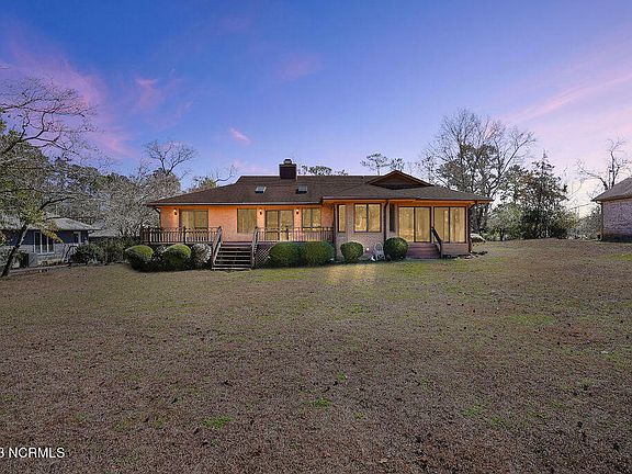 PRICE DROP! 20 minutes to Surf City beaches, 30 minutes to Wilmington, 40 minutes to Camp Lejeune/Jacksonville. Well maintained brick ranch with an abundance of natural light is waiting for you. Enjoy watching the golfers on the 6th fairway and entertaining friends and family on the deck. Beautiful perks of this home include custom built ins, a wood burning fireplace, skylights, and a sunroom. Primary bathroom has a deep jetted tub and spacious walk-in shower. Kitchen has ceramic tile floors and granite countertops. Includes an oversized 2 car garage, rain gutter guards, and so much more. Say hello to your new home! Country club membership is available to purchase to access the community pool. *$5,000 will be credited to a buyer with accepted offer as well as a seller paid home warranty*