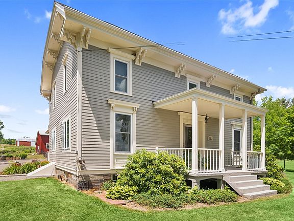 A true storybook setting! Locally known as Toad Hill Farm, this meticulously maintained estate boasts a circa 1865 center-hall colonial situated to enjoy the Sunrise valley view featuring elegant period details throughout this 5+bd 2 1/2 bath home. From the original oak trim on doors and windows to the wide plank pine floors all harvested from this idyllic property. The floor plan offers ample entertaining opportunities from the updated kitchen to the large dining and adjoining Living room which gives way to the front original stairs leading to the 2nd floor where you'll find 5 large bedrooms including the tranquil master suite with updated bath and a relaxing private balcony. The attached oversized 3 car garage includes in-floor heating and a drive through design and a workshop. Red Carriage Barn with stalls and paddocks are ideal for horses, storage or country shop. Older cattle barn and a 72 x 42 free span pole barnnestled on the nearly 100 acres of open fields and woods w/2 ponds.