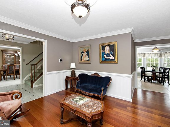 Welcome to this beautiful, upgraded Mclean model home situated in a cul-de-sac in the very desirable Ravenscliff neighborhood. As you enter through the front door, you will immediately notice the Italian porcelain tile flooring in the two-story foyer and gorgeous Brazilian cherry hardwood floors in the two-story family room. The newly painted dining room to the right is currently being utilized as a parlor. It boasts beautiful, newer hardwood floors and charming wainscoting as well as crown molding. The French doors from the dining room to the kitchen have been placed in the basement for the new buyers to use if they so choose. The large, newly painted kitchen boasts stunning ceramic tile floors, granite counter tops, tile backsplash, GE jennair cooking, all stainless-steel appliances, cherry wood cabinets with updated hardware, an island, a desk, a bump out window behind the sink AND a bay window, a coffee bar with subway tile backsplash, and a wet/dry bar! The laundry room, adjacent to the kitchen, has the same beautiful tile floors and cherry cabinets to match the kitchen. The sizable powder room also has the same tile floor and an upgraded vanity. As you walk into the family room, you will be wowed by the beautiful floor to ceiling stone, wood burning fireplace. There are big windows to let the sun shine in, as well as a glass slider to the deck. Adjacent to the family room, there is a very spacious office with double windows, crown molding, and a ceiling fan. If you walk through the French doors of the office, it will lead you to the living room with crown molding, multiple windows, and a pretty chandelier. The living room is currently being utilized as a dining room to accommodate a huge dining room table. The family room, kitchen, and office all have ceiling fans with lights, which keeps the house nice and cool during the summer! Additionally, the second floor has four sizable bedrooms all equipped with ceiling fans/lights as well. The primary bedroom is stunning with its vaulted ceiling, and very large walk-in closet with French doors. The spa-like primary bathroom is anybody’s dream with its 36” granite vanity with double sinks, gorgeous, neutral tile floors, a free-standing tub, and a huge, tiled upgraded shower with multiple shower heads and a granite bench. The three other bedrooms share a beautifully appointed, upgraded bathroom that was updated in 2021. It also has a 36” white vanity with double sinks and neutral tile floor. The finished basement has an abundance of storage space as well as plenty of room to make your own! This home will not last!