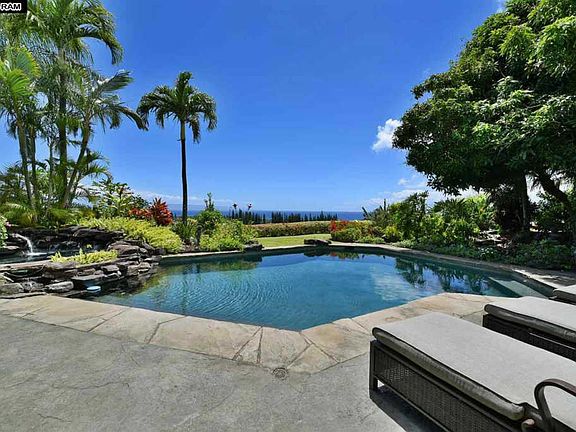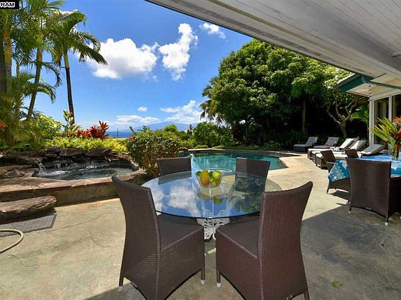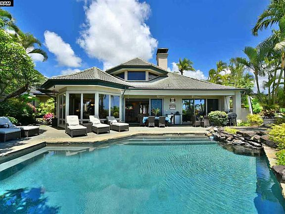 This impeccable, totally-remodeled retreat has 3,400 square feet of gracious island living and is perfectly located on arguably the best lot in the highly-desired and exclusive gated community of Pineapple Hill. Distinguishing features include travertine floors, gourmet kitchen with Wolf appliances and Miele built-in coffee system, first floor master en-suite with spacious walk-in closet and dressing area and vanity, and convertible office/den/5th bedroom with Murphy bed. The lush tropical setting with koi pond affords terrific privacy with spectacular panoramic sunset views against the backdrop of the outer islands of Lanai and Molokai. This one-owner home is designed for impressive entertaining of family and friends in this stunning island setting.