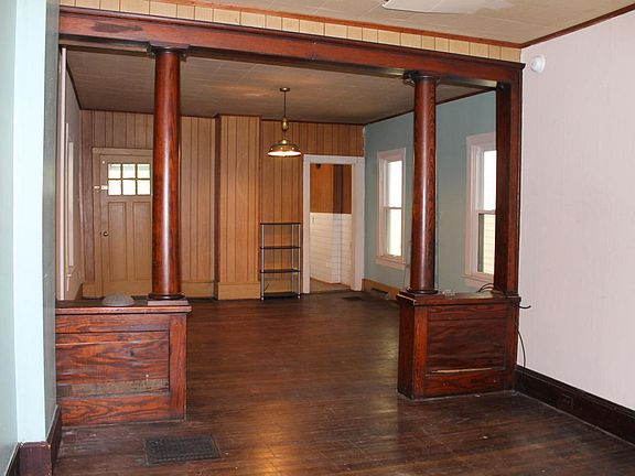 Nice two bedroom home featuring hardwood floors, fenced in yard and balcony. Spacious living room and dining room. The unfinished basement has a separate entrance, separate electric, a bathroom, laundry hook-up and a workshop. Close to the hospital and downtown. A little TLC is all this home needs to make it your own!