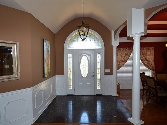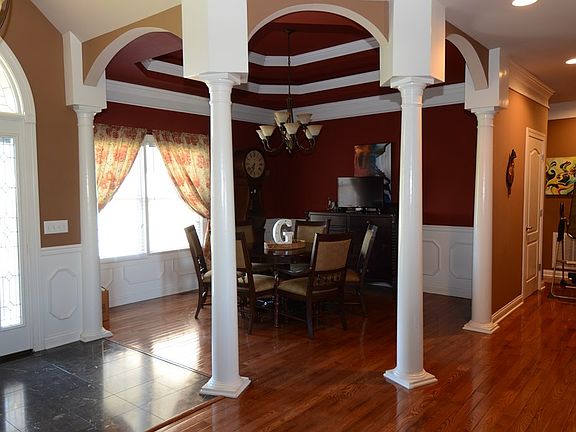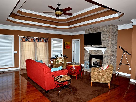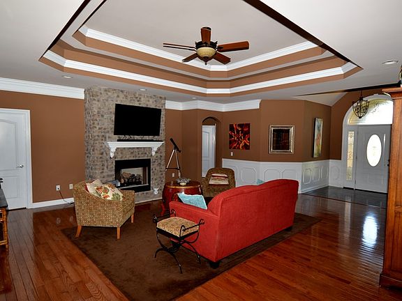 Stunning custom built home with octagon tray ceilings, double tray ceilings, vaulted ceilings, hardwood, granite counter tops, 2 HUGE family rooms in the basement as well as 3 garages ( 2 up & 1 down) and located minutes to town