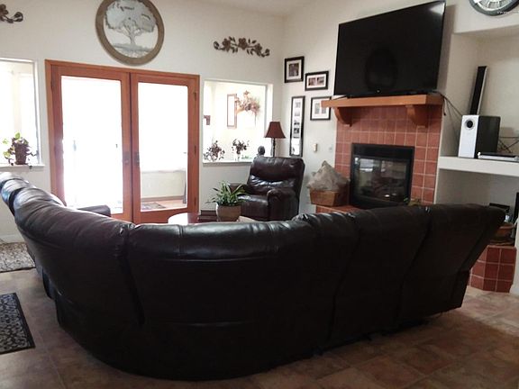 Relaxing country home with 5+ car garages on over 2 fenced acres. Great floor plan with lots of windows and space. Fireplace in living room, dining room off of kitchen. Kitchen has lots of cabinets and workspace. Den/office in addition to the 3 bedrooms. Arizona room opens to back patio. Beautiful master suite also opens to the patio. Laundry room has extra storage cabinets and wash basin. Attached garage is over sized 2 car garage that will fit a large truck plus another vehicle with room for work shop as well. Detached garage is 3+ car with ample room for all the work benches and tool boxes. Lots of concrete into the yard and garage area. RV hookups with room enough to park RV on the concrete. Tile roof on home. Views of the mountains. Large covered porch.