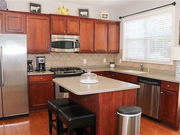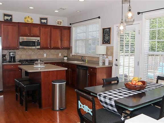 - Kitchen Features: Cabinets Stain, Eat-in Kitchen, View to Family Room, Kitchen Island, Breakfast Room, Solid Surface Counters