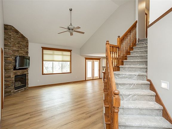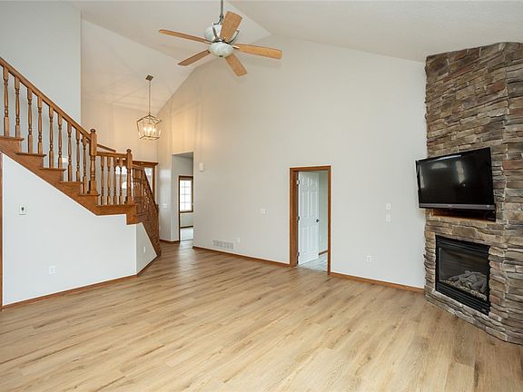 A stunning new listing that embodies modern comfort and style, nestled on a cul-de-sac treed lot. This immaculate walk-out 1.5-story offers an abundance of space. Vaulted ceiling in the great room, enhanced by a cozy gas fireplace adorned with stone reaching to the ceiling, all complemented by newly installed LVP flooring. The spacious kitchen, where white cabinets and new quartz countertops create an atmosphere of timeless elegance. A walk-in pantry provides ample storage space, mudroom offers convenience with cubbies/bench, and a powder room, alongside a well-appointed laundry room complete with a laundry chute. This remodeled home boasts a front office, along with a bonus/toy room to suit your lifestyle needs. The main level primary suite offers a luxurious retreat with a private bath featuring a walk-in closet, dual vanity, and a brand-new tile shower. Ascend the open stairs to discover three additional bedrooms and a bath on the second level. The lower level is an entertainer's dream, boasting a spacious family room, versatile rec area, and a bar for hosting gatherings. A theater room offers the perfect escape for movie nights, while a fifth bedroom and bathroom provide added convenience. Outside, enjoy the gorgeous backyard with a deck and patio, perfect for outdoor entertaining. This home has been meticulously updated, with highlights including exterior paint, a new roof (2022), new garage doors, along with updated landscaping and all-new flooring throughout.