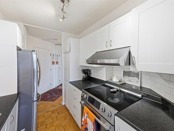 South-facing suiteTwo balconiesOak parquet floorsUpdated kitchenNew counters and appliancesClassic bathroom renovationMarble floors