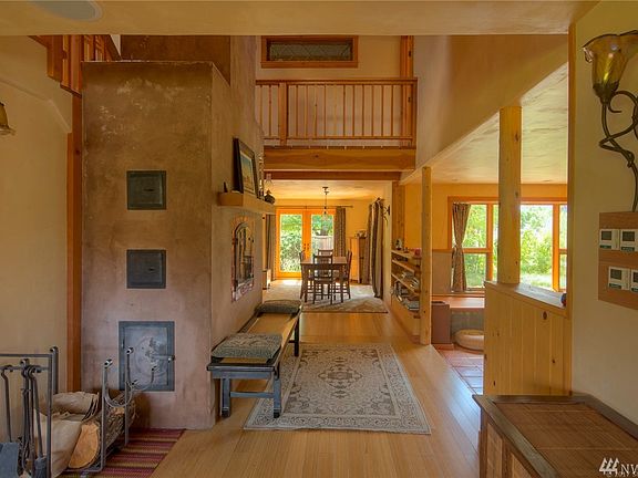 Contemporary Eco-Friendly Farmhouse on 5+ acres. Fully renovated w rich custom woodwork, cork & bamboo flooring & radiant heat Saltillo tiles. Warm color plaster walls & deep window seat. Passive solar in winter & cool in summer! Sweet back deck & stone patio w landscaped yard w fruiting plants. Organic farm w features to support your garden dreams-year round greenhouse, garden shed, irrigation shares, fruit trees, heated shop & carports. 2 car garage w bonus studio apt. Master w walk in closet.