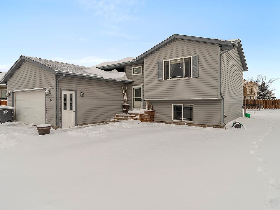 Look at those barnwood accents! This one has been updated in several gorgeous ways. From the updated cabinets to the fresh trim, you'll enjoy the esthetic. The sellers removed every shred of carpet in the home and replaced it with durable and beautiful lvp floors in a natural color. The main level consists of 2 bedrooms, 1 bathroom, spacious living room, and an open concept kitchen and dining. The master bedroom has its own direct access to the bathroom as well as a large walk-in closet. The basement holds 2 more bedrooms, another bathroom and a large family room. The back yard is mostly fenced so would take much to get it ready for your 4 legged friends. This home is in close proximity to Ellsworth AFB and Douglas Schools. Call today to schedule your private showing.