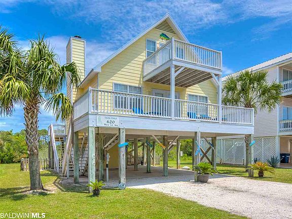 This gorgeous beach house is steps from the beach and on Little Lagoon! This home offers: 2 stories, 3 bedrooms (master suite on main), 2.5 baths, fireplace, 4 large decks, covered parking for your boat and cars, outdoor storage, and a BRAND NEW BRONZE FORTIFIED METAL ROOF! It is being sold fully furnished and is currently in a rental program. The main floor has the master suite, laundry, half bath, kitchen, living room and fireplace. The upper level offers 2 bedrooms, full bath, and 2 decks off the bedrooms. This home has it all! Ask about the insurance savings and schedule your viewing today!