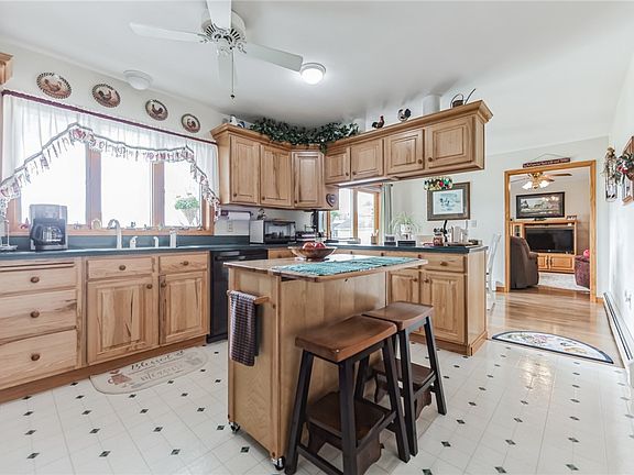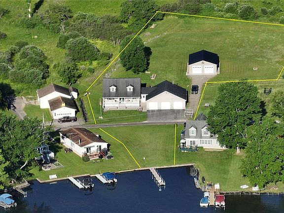 This year-round cape-style lakefront home has beautiful lake views with a large covered front porch. The kitchen is open with natural wood cabinets, Corian countertops, and a front-facing window with views of the lake. A dining room with a sliding door overlooking the lake. The living room design is cozy and comfortable, with a picture window. The Owner's bedroom on the first floor has direct access to the full bathroom with a separate shower and garden tub. The Owners also has direct access to the office. The rooms on the first floor all open to each other to create an easy flow from one to the other. Two second-floor bedrooms and a full bathroom are perfect for hosting guests. A second-floor windowed storage room is large enough that it has been used comfortably as an additional sleeping room. The second floor has comfortably supported 10 people.1600 Sq Ft heated attached floored garage, unheated loft, and an additional 1200 Sq Ft floored pole barn for storage. Key utility features include a dual boiler system that provides heat and hot water to maximize winter living savings, water softener, and an engineered-design septic system.