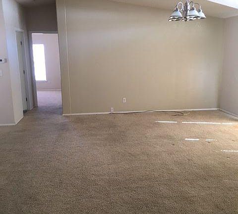 This 2006 home has an open floor plan with many large windows. Well kept, neutral colors and ready to move in. Laundry room inside with sink. Master bedroom has a large walk in closet. Master bathroom features a garden tub. Second bathroom is a full bath as well. The kitchen features solid surface counter tops with plenty of storage. Split floor plan with master bedroom on one side and two bedrooms on the other side of home. Front of the home has a nice covered deck for entertaining. This home is a must see!!