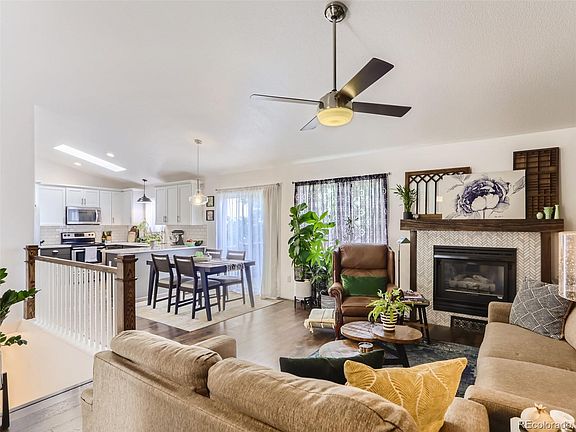 - Description: Pergo Laminate Floor, Gas Fireplace W/Herringbone Tile Surround, Ceiling Fan, Vaulted Ceiling, Open To Dining Room And Kitchen