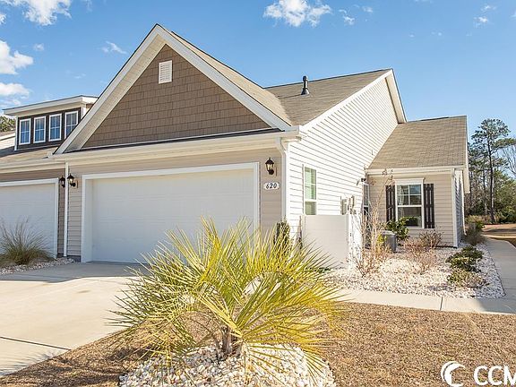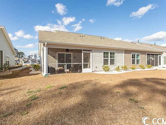 Beautifully located home, the entrance to Heather Glen are Live Oak Trees and waterfall. Arriving in the community, view of large ponds with fountains and walking areas. Large clubhouse, exercise room, pool/spa and porch with rocking chairs and lounge chairs for enjoyment. The home on Wallace Drive has rear screen porch attached to One Story Home with three bedrooms two bathrooms and double garage. Pull down attic stairway to storage with ample flooring and safety rail to assist at top of steps. Living room vaulted ceiling with ceiling fan and sunlight through side windows with plantation shutters. Kitchen fully appointed; pantry allowing small appliances to store on cabinet with electrical plug-in and motion light. Countertops hard surface with breakfast bar; stainless appliances. Washer/Dryer area also motion light. Bathrooms with comfort height water toilets/tile floors. Master offers double vanity. Landscaping with rocks and shrubs. Electric and Natural Gas. Close to shopping, hospital ,beaches plus the community amenities. Landscaping with river rock; HOA maintains lawn.