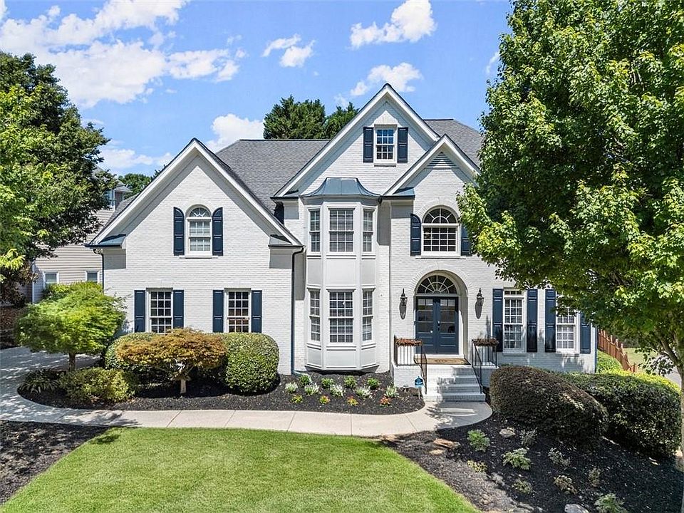 Exquisite home in the coveted Edenwilde neighborhood! Charming white painted brick home with elegant Sherwin Williams 'Gale Force' trim accents on a Cul de sac lot. As you enter through the oversized glass double front doors, you will immediately appreciate the gleaming hardwood floors, the substantial dining room, and the two-story foyer that leads to a light-filled living room with a fireplace. There is a bedroom on the main level with a full bathroom. Renovated gourmet kitchen has an island with storage space, granite countertops, tile backsplash, double ovens, stainless steel appliances and a hand hammered copper farm sink. Enjoy breakfast in the eat in kitchen with double doors that lead to the recently refinished back deck. Whether you enjoy the peace or entertaining family and friends, you are in for a pure delight! Outside you will find the covered pergola which provides a picturesque spot for outdoor dining and relaxation, overlooking the fenced in backyard. New carpet. Updated light fixtures. Upstairs you will find 4 generously sized secondary bedrooms. One has its own private bathroom and one with a Jack and Jill bathroom. The owner's suite adjoins the owner's bathroom which has double vanities, granite countertops and a large jacuzzi tub. Large closet with built-ins and a window to give extra light. The fully finished terrace level can easily double as an in-law or au pair suite and includes a second kitchen area with a refrigerator and microwave, an additional bedroom, full bath, bonus room, family room and easy access to the expansive outdoor entertaining space. There is an unfinished room which is ready for you to design how you wish. Plenty of storage space. Zoned for award winning schools: Sweet Apple Elementary, Elkins Pointe Middle, and Milton High. Conveniently located near shopping, parks, and schools. Easy access to Crabapple Market District, downtown Alpharetta, and Historic Roswell. Edenwilde community amenities include a Jr. Olympic competition swimming pool, splash area, toddler pool, six tennis courts, pickleball, sports court, fishing dock, lake, playgrounds and a beautiful clubhouse. Very active social committee! Welcome home!