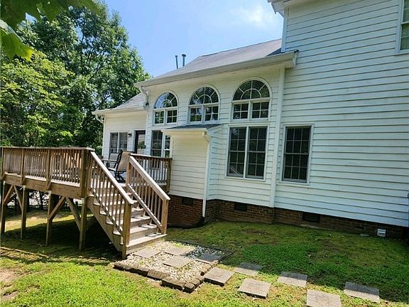 AWESOME, elegant home located in the desirable Wellington Forest Subdivision near SouthPointe. Situated on a corner lot, the home features an open floor plan with a grand 2-story foyer and lovely hard wood floors throughout the main living area. The great room has a cozy stone fireplace and high ceilings with plenty of natural sunlight through the grand palladium windows. The Main level has a separate formal dining room w/chair rail and crown molding and a separate breakfast area off the kitchen. The kitchen is equipped with 42" cabinets and granite countertops. Also on the main level is the primary en-suite with a walk-in closet, bath w/separate shower, jacuzzi tub and tiled floors. This spacious home's second level includes a large bonus room, two large additional bedrooms, and a full bath. The deck on the rear of the home for enjoying friends and family provides extra space for dining and outside entertaining. The community Clubhouse w/pool and tennis courts ensure loads of fun. The home is within minutes to Research Triangle Park, Duke, NCCU, UNC and within walking distance to shops and restaurants. Schedule your visit today and don't let this one slip away!