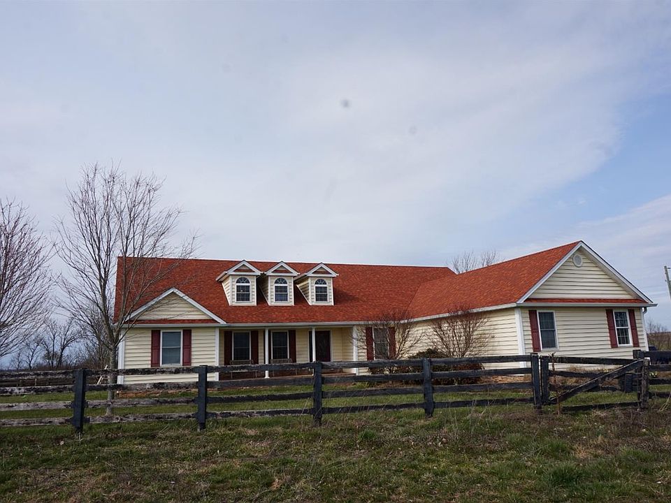 Sunrise over beautiful Cedar Creek, sunset over the hills of Stanford. Fabulous views in all directions from this lovely 3 BR, 2 1/2 bath home located on 21+/- acres. large great room w/vaulted ceiling, superb kitchen w/space to entertain, sunroom/dining area overlooking pasture, large master suite, central heat & air, 3 car attached garage w/storage, 24 x 48 barn w/4 stalls & tack room, fenced, well watered. Close to Stanford & Crab Orchard