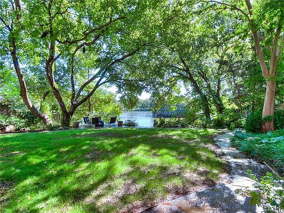 Finding a home in city limits, backs to a spring fed lake with a private "Rock Dock" and has a view of an island and great fishing is hard to find but here it is! This quiet beauty allows nature to calm as you sit by the pool, view the gorgeous surroundings and listen to your own fresh, lake water fountain. A secret garden awaits you off the master bathroom which is located on the main floor along with the library, spacious formal dining and gourmet kitchen. The master closet is store-like with doors from a New Orleans home as are the outside balcony railings. The man cave/ second living space is located downstairs with a full bedroom/full bath. Two large bedrooms and a Jack n Jill bath are located on 3rd floor. Storage abounds on every floor! The pool not only has a gazebo but also an outside pool bathroom. Launch your boat off the natural rock dock and fish beautiful Blue Stem Lake for a wide variety of game fish including largemouth bass, crappie, bluegill and channel catfish.