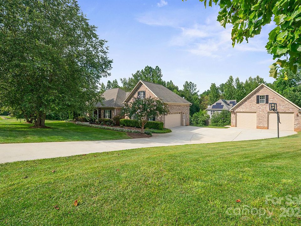 This highly sought-after Stockbridge Estates full brick home offers an open floor plan ideal for family gatherings and entertaining. The primary suite, located on the main level, features a spacious walk-in closet, a soaking tub, a separate shower, and split vanities. Relax on the screened-in porch and deck off the family room, overlooking a large 16 x 32 in-ground Saltwater pool. The full unfinished basement provides potential for a rec room or extra living space. With a 2-car attached garage and a 2-car detached garage, there's plenty of room for cars, hobbies, and more. Just 22 minutes to CLT, this home offers an easy commute to Charlotte, with shopping, restaurants, Whitewater Center, Crowders Mountain, and Belmont all nearby. Pool updates include: new liner 2024, new pump and diverter 2025, filter sand replaced 2024.