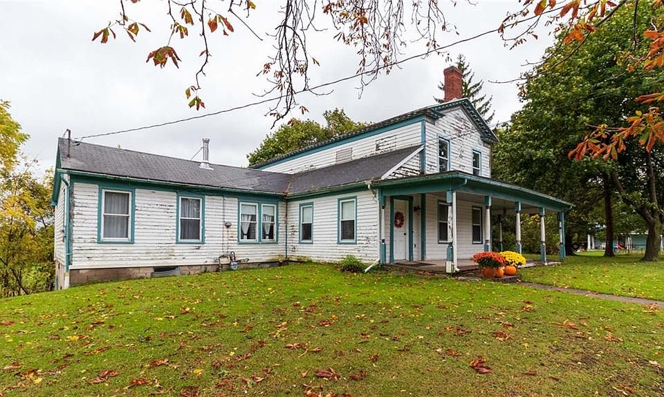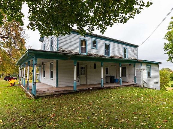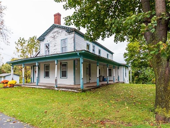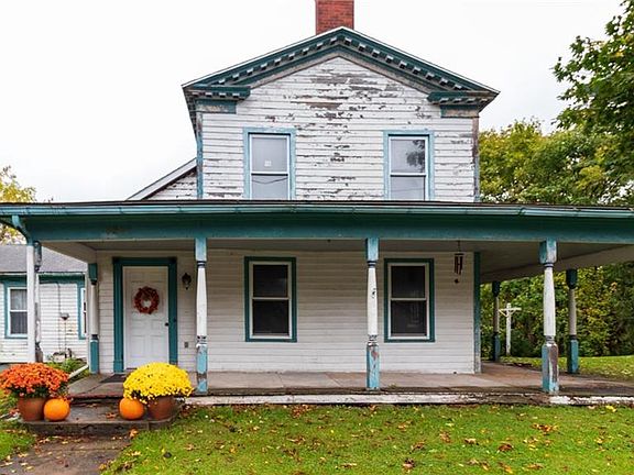 This country farmhouse is one of the mainstays of the village of Cayuga! Large wrap around porch greets you from the street. Large shed for storage. Inside the owner's unit, you will find an updated kitchen with large window overlooking the beautiful backyard, cove moldings throughout the home make this area very elegant. Pretty wainscoating and trimwork. Large living room with beautiful pillars and moldings, 2 good sized bedrooms and bath, first floor laundry. The second unit is awaiting your imagination. Could be converted back to a single family home as well. Walkout basement could also be living space. Much work needed to bring this back to life, but at this price and in this area, surely worth the money. Come see the opportunities for yourself! The time is now to make this your own!