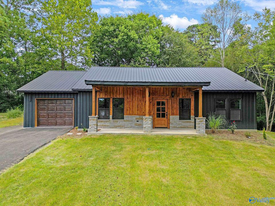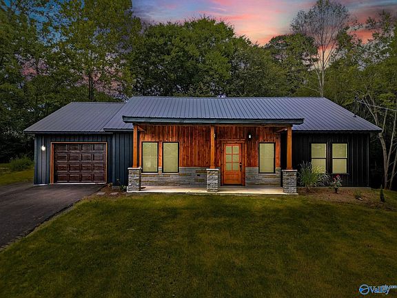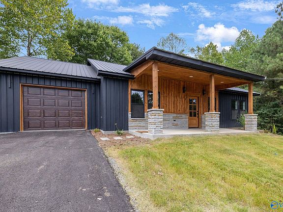 Modern craftsman charm meets everyday comfort in this brand-new 3 bedroom, 2 bath home in the desirable Jarmon subdivision. Wood accents and vaulted ceilings create a warm, open feel in the living room, seamlessly connected to a spacious kitchen with stainless steel appliances and a dining area ideal for gatherings. Durable LVP flooring flows throughout, balancing style and low maintenance. The split floor plan offers large bedrooms for privacy, including a generous primary suite with walk-in closet. A dedicated office adds flexibility for work or study. Enjoy an attached garage, cul-de-sac lot, and quick access to Guntersville schools, shopping, and the lake.