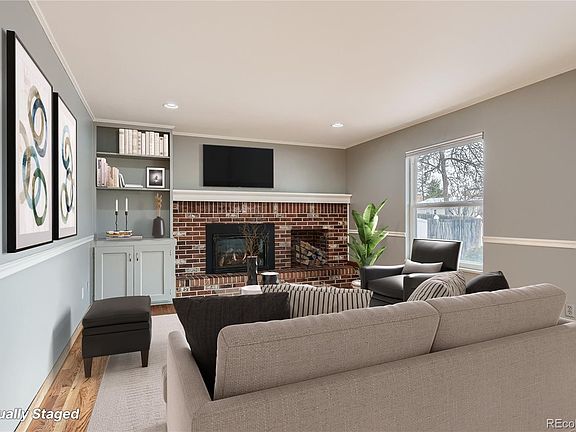 - Description: Hardwood Floor, Gas Fireplace With Brick Surround, Built-In Bookcases, Crown Molding, Recessed Lighting, Chair Rail, Sliding Glass Door To The Patio, Open To The Kitchen