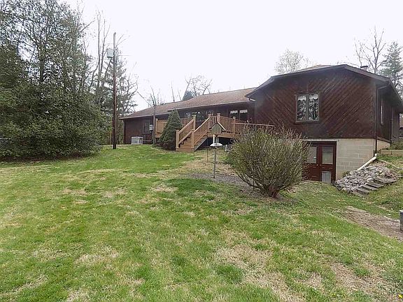 Well Maintained 2 Bedroom 2 Bath Home located on 5 Acres that are partially Wooded! This home has a nice size front living room with a wood burning fireplace, 2 large bedrooms with the master having a walk-in closet and an additional standard sized closet. Both full baths have tub/shower combos and one bath has a double vanity and a desk with a large mirror and strip lighting. The spacious kitchen has large windows with a beautiful view of the park like setting in the back yard and there is plenty of cabinets and counter top space. The kitchen also includes a pantry, breakfast bar, radiant heated floor, and includes all of the appliances. The dining area off of the kitchen has a corner cabinet and glass doors that open to the large composite deck. The partial walkout basement is unfinished and has a vanity, separate shower, and wood burning stove. Plenty of parking with an attached 2 car garage and a detached two car garage. Never worry about losing power due to storms, because this house comes with a whole house generator! The home is currently on well water, but is connected to public water system.