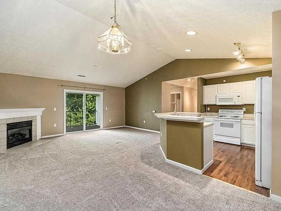 A RARE FIND! Wonderful open concept third-floor condo with vaulted ceilings AND A ONE CAR GARAGE! Two bedrooms and two full bathrooms! New carpet and paint throughout as well as new flooring in the master bathroom! Enjoy the relaxing woods and Alum Creek running behind the property from the covered balcony!