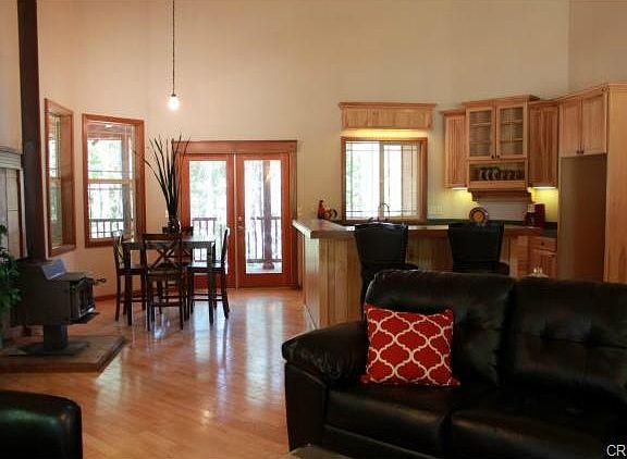Warm, welcoming wood home in Paradise Pines with open floor plan, soaring ceilings, wraparound deck and tons of room. The main floor hosts a spacious great room with wood stove, generous windows and double doors to the wraparound deck, a well appointed open style kitchen with pantry, a large master suite with private deck and beautiful tiled en suite, second bedroom w/loft sleeping area, and a separate laundry room. Downstairs is a large living/sitting room adjoining its own covered patio, another bedroom and bathroom plus a bonus office area tucked in - great configuration for kids, guests, in-laws or a home-based business. Brand new carpet throughout, plenty of storage and lots of outdoor areas to relax and enjoy and an attached 2-car garage.