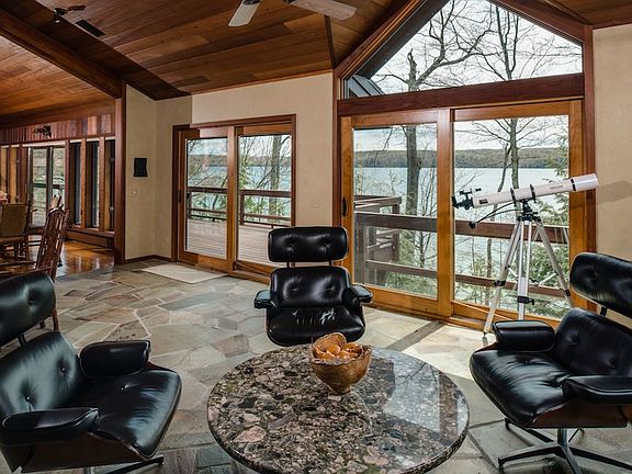Experience the warmth and elegance in this inviting 5000 square foot, 5 bedroom, 5 and 1/2 bath, Walloon Lake home. Tucked in among the mature hardwoods, this highly sought after Lake Grove address offers plenty of privacy. With over 300 plus feet of prime lake frontage and its sweeping views of Walloon's azure blue waters, this unique property will provide the ultimate spot to enjoy all that Walloon Lake has to offer. Inside the home you will marvel at all of the rich redwood paneling, its double sided fieldstone fireplace, and the airy vaulted ceilings. Features include a first floor master suite, an attached guest apartment for extended family, a double sided gas fireplace, wood burning fireplace and a three-car garage. Enjoy the convenience of this property's closeness to McLaren Northern Michigan Hospital, Petoskey shopping and dining.