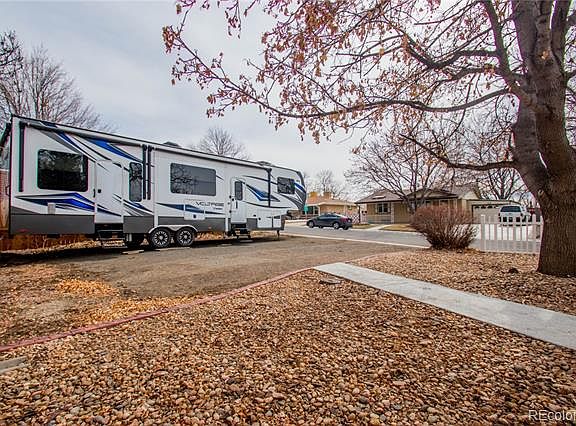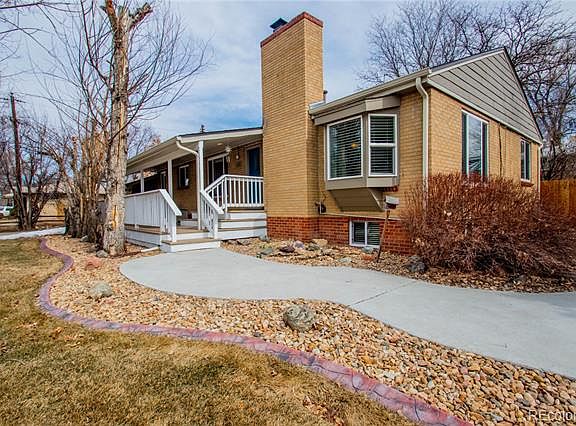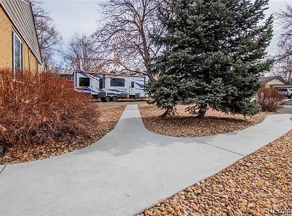 Extraordinary home and yard! Gorgeous Rocky Mountain view New fencing, 4 zone sprinkler system, Custom concrete yard edging, lots of mature landscape including fruit trees, pine trees and more. Fabulous 41 ft x 14 ft eastern facing covered patio with double paned skylights, wired for a sound system, easy access to 30 amp RV hookup, 2 large parking spots for RV parking and a 10 ft x 20 ft storage building. Interior Features include a custom kitchen with lots of counter top space, a gas stove, 2 sinks and a good sized pantry. Newer roof, newer double paned windows and very nice living room bay window, approx 2 year old furnace, central air cond., attic fan, ceiling fans, refrigerator in kitchen is included, some fresh interior paint, well maintained hardwood floors, custom window treatments, jet action tub, gdo w/1 transmitter, upgraded and remodeled bathrooms. Walking distance to \"Old town Arvada\", light rail, park, elementary school and steps away from an RTD bus pick up station.