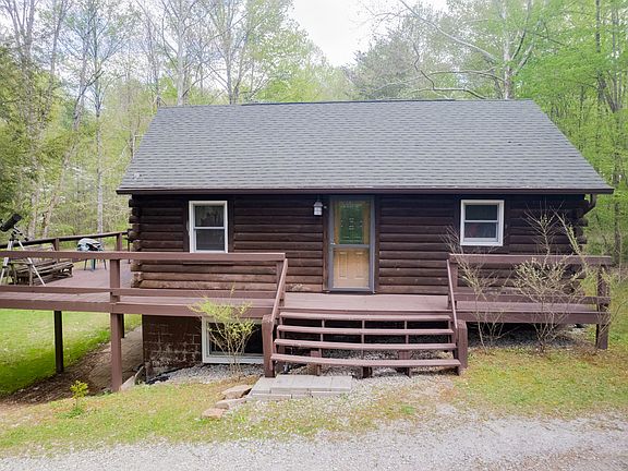 Whether you're looking for a weekend retreat or a permanent residence, this charming cabin home is a perfect choice. This 3-beds, 2-baths log home, has a wraparound porch, walking trails, firepit area and a 36x20 detached garage situated in the woods. The cabin's interior is warm and inviting, with an open-concept living and dining area, perfect for entertaining. The loft adds an additional level of charm and coziness to this cabin, creating a perfect hideaway for a peaceful weekend. The bedrooms are spacious and comfortable, with plenty of windows that allow natural light to flow in, bringing the outdoors inside. A family room, third bedroom, and the laundry room are all located in the basement.