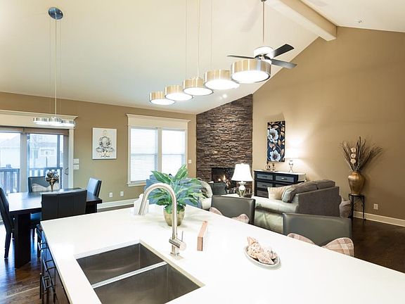 Gorgeous Rod Laing custom built home near Langston Hughes Elementary, Rock Chalk Park & K-10/I-70!!! 4 bdrms/3 baths/3 car side entry garage. Living features floor to ceiling stone fireplace. Great kitchen w/SS appliances! Hardwood floors thruout the main level. Wonderful master suite w/oversized shower & jetted tub! Finished basement w/4th bdrm, full bath & large family room. Screened porch is awesome! Large patio area! Fence & sprinkler! Lot next door is available for $65,000.