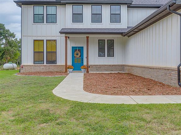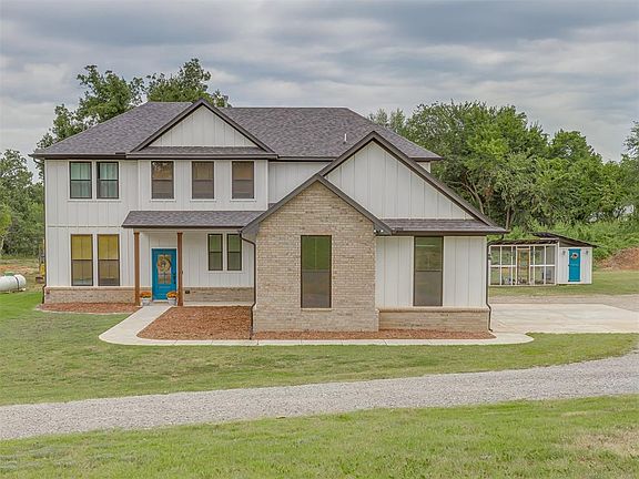 You don't want to miss this absolutely stunning custom home on 5 secluded feeling acres but still convenient to I-40, 240 & Tinker AFB. This house has everything you might want or need in your forever home. The living area is perfect for entertaining, with gas fireplace, multi-panel glass patio doors & an open living/dining area. From there you transition seamlessly into a chef's kitchen boasting a built-in commercial refrigerator, double ovens, farm sink, oversized island with seating, gas cooktop, built in microwave & all the storage you could possibly need. If you want more though, don't worry! There's also a full walk in pantry & built-in desk, perfect for sorting mail or catching up on homework. Once the day is done, you'll be happy to retreat to one of the two master bedrooms this house offers. While the large downstairs master offers double closets, a built-in vanity desk & soaking tub/shower combo, the equally sized upstairs master has its own unique features - walk-in closet, soaking tub & separate shower, twin vanities, water closet & a private balcony, perfect for enjoying the incredible view from this vantage point. The three remaining bedrooms are all also good sized, with large closets & plenty of natural light. The hall bathroom was thoughtfully designed with double sinks & multiple doors, providing privacy for each of the spaces at the same time. Once you've explored the house (be sure to also note the reading nook & built-in shelves in the upstairs hallway as well as the mud bench off of the garage!), take a step onto the back patio. Imagine yourself relaxing there in your own private oasis anytime you want. Wandering over to the custom chicken coop (built to match the main house) & collecting eggs for your morning meals. Letting your eyes scan the horizon & enjoying the added privacy provided by the berm that runs along the southern property line. I promise, words do not do this house justice. Be sure to ask about the 3.875% assumable rate!