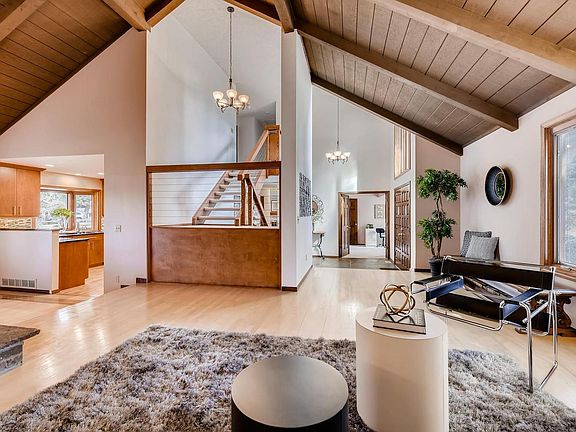 Updated southeast facing home on cul-de-sac, backs to greenbelt & adjacent to park. Soaring vaulted ceilings & open designer staircase. Main floor w/inviting living room, wood fireplace/stone hearth, kitchen w/granite counters & appliances, and sliding doors in both kitchen & adjoining family rm to back yard & abundance of natural light. Main floor also includes full bath & bedroom/study. Second floor includes large master suite w/5 piece bath with heated floors, and is separated from other 3 bedrooms & 2nd 5 piece bath by a hall. Recent updates most wood floors on main, invisible fence, security system, Pella windows throughout, upgraded balcony on second floor w/access from both Master & 4th bdrm, new sewer line & roof. Community of Arapahoe Lake surrounds a 3-acre lake, located east of DTC & minutes from Cherry Creek State Park and award-winning Cherry Creek Schools. Easy access to light rail/highways. Nestled in community is a pool & tennis courts as well as an elementary school.