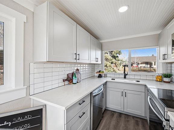 ABSOLUTELY GORGEOUS! Completely renovated ranch home sporting a new kitchen with new quartz countertops, shaker cabinets and new stainless steel Samsung appliances. Bath was completely remodeled with the vanity separate from tub/shower and toilet for YOUR convenience. All new windows, doors, luxury vinyl flooring, hardware, ceiling fans and lights thru out. Newer roof, gutter, furnace and hot water heater. LOCATION LOCATION LOCATION - Your new home sits on a nice corner lot (Jay & 10th Ave Cul De Sac next to beautiful park and walking distance to elementary school. Enjoy a morning coffee or an evening adult beverage on your beautiful covered front porch while waiving as your neighbors take their best friends for some exercise in the park. Bonus as the shed (ADU) has been converted into an office, study, studio or what ever best fits YOUR needs. The shed has electricity and a portable heater for your comfort. 2 off-street parking spots in front of the shed plus to more in front of the property along the street as well.
