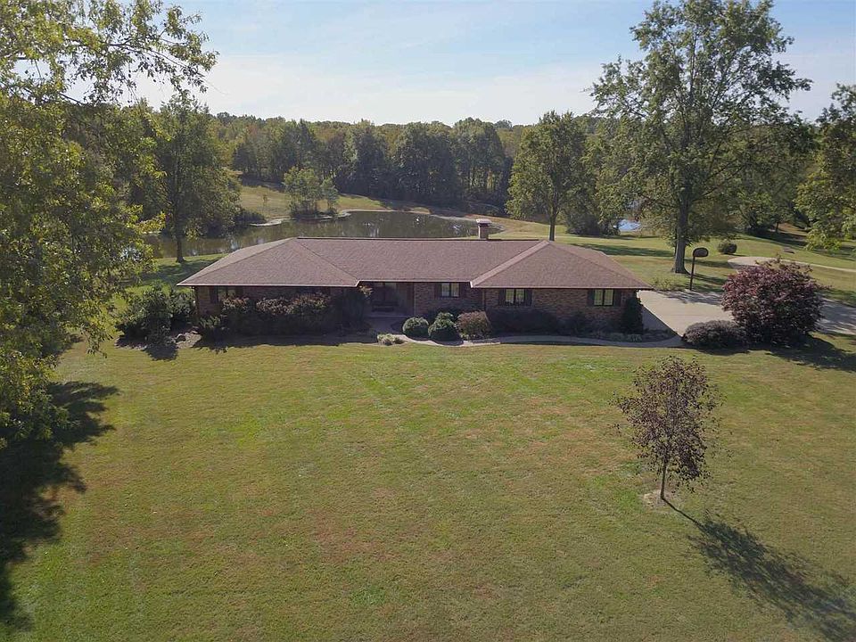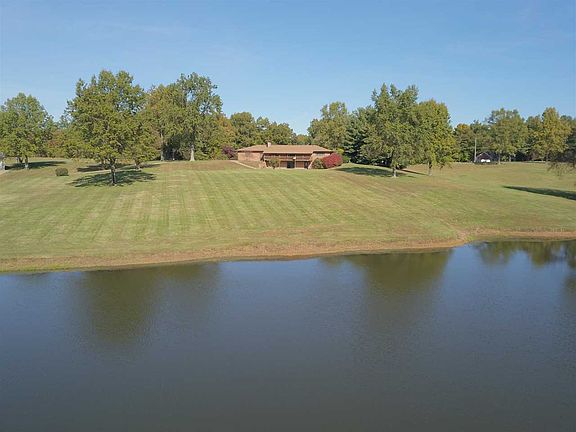 THIS IS A ONCE IN A LIFE TIME PROPERTY! One owner home located on the North West side of Evansville on nearly 70 ACRES of BREATHTAKING NATURAL BEAUTY and it could all be YOURS! All brick ranch style home featuring LAKE VIEWS from most rooms! Open foyer to living room, chef pleasing kitchen with dining area that all have access to the covered deck across the back to enjoy the MILLION DOLLAR VIEW! The large kitchen has solid surface counter tops with ceramic back splash, breakfast bar, all appliances and several pantry cabinets. There is nice sized master suite with private bath and his and hers walk in closets. Plus 2 other large bedrooms with walk in closets. Another full and a half bath finish out the main level. The finish walk out lower level boasts a huge Family room with brick wood burning Fireplace that has a custom mantel. Inviting wet bar with full size refrigerator and bar stools, opening out to a wonderful patio! Separate Rec room that includes pool and ping pong tables! Plus the 3rd full bath. The home contains stained solid wood doors and trim, poured concrete basement walls, concrete storm room, large laundry room w/sink, security system, 3 1/2 Car Garage attached, 40 x 72 Pole Barn with partial concrete floor and partial dirt floor for livestock. Approximately 7+/- Acres of stocked lakes. One year home warranty and Immediate Possession! HURRY!!!