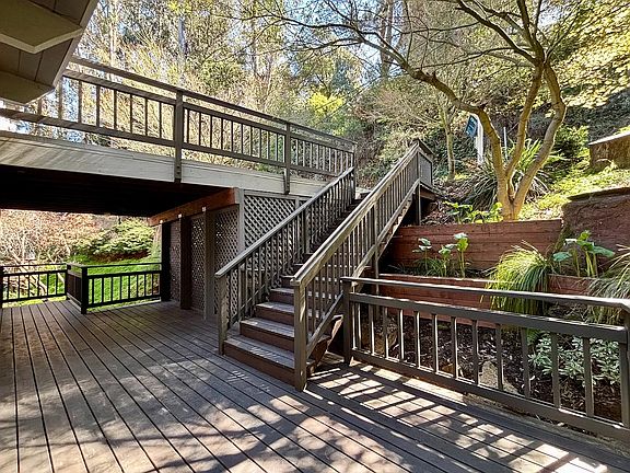 Stylish Montclair Contemporary with a spacious open floor plan and thoughtful modern updates. Main level living to dining spaces with vaulted ceiling, tons of sunlight from floor-to-ceiling windows. Family room with French Door opening to front deck. A bedroom and full bath on main floor. Lower level is a master bedroom with walk-in closet, 3rd bedroom, a large bonus room (can be used as 4th bedroom with sitting/office area) and laundry room. A deck runs the length of the house on main level and a shared deck for master bedroom and 3rd bedroom on lower level. One car detached garage with Tesla charger, work station and storage, additional one car parking on private driveway. Mins away from parks, Montclair Village and HWY 13/24/580. Minimum 1 yr lease, tenants are responsible for all utilities. Non-smoking property, renter's insurance is required, NO SUBLEASE. Small pets are welcome with pet deposit, no extra rent. Move in costs: 1st month rent plus One month security deposit. Open for lease-to-own option.