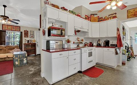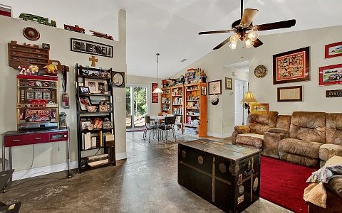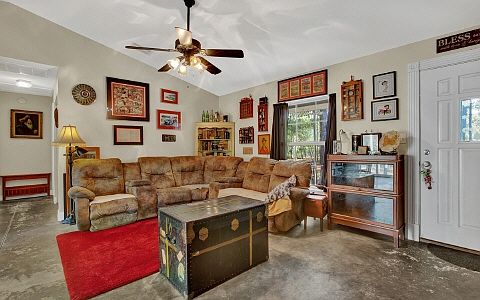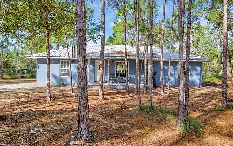 Nestled on 1 acre of land is this ONE OWNER 2013 Built Insulated concrete block home. Split floor plan 3 bedroom, 3 baths and nearly 1400 square feet of living space. Very energy efficient metal roof with 25 year warranty. Quartz kitchen with vintage inspired stove. Master bedroom with a large walk in closet and private bath. Two additional bedrooms & guest bath on the other side of the house. Soaring vaulted ceilings really open up the floor plan. Sliding doors off the dining room to the back yard. Indoor laundry room with front load washer and dryer. The acre is completely fenced and features a powered gate entry at the driveway. Iron breaker water system, RV hook up, storage shed with electric. Underground electric from the road to the house. (Riding lawn mower and other lawn tools available for purchase).