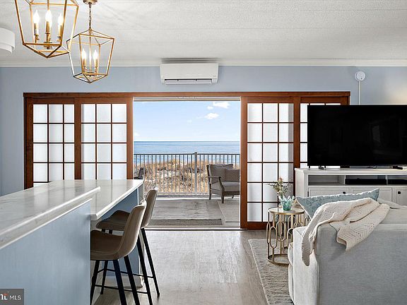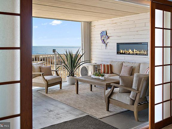 Stunning Oceanfront 2BR/2BA Condo with Unbeatable Views & Extensive Upgrades- Welcome to your dream coastal retreat! This beautifully renovated 2-bedroom, 2-bathroom oceanfront condo offers a modern and luxurious living experience with breathtaking ocean views. Located in the desirable Midtown area of Ocean City, this elevated unit (equivalent to a second-floor unit in other buildings) boasts one of the largest balconies in the area, making it an entertainer’s paradise. Step inside to find an exquisitely upgraded interior, highlighted by a gourmet chef’s kitchen that will inspire your culinary creativity. Featuring sleek quartz countertops, double ovens, custom cabinetry, ample storage, modern lighting, and luxury vinyl plank flooring, this kitchen is designed to delight. It seamlessly flows into the dining area, creating the perfect space for family meals and gatherings. The spacious family room provides an inviting atmosphere for relaxing or entertaining, with new glass sliders leading out to your expansive private balcony. The balcony is an extension of the living space and is ideal for lounging while listening to the sounds of the waves crashing. Enjoy outdoor dining, a crab feast, or simply unwind by the eclectic fireplace, which sets the mood for cozy spring evenings and brisk fall nights. Plus, the balcony is equipped with hurricane shutters for added peace of mind. The primary bedroom features an en-suite bathroom for ultimate privacy, while the second bedroom is also generously sized. A second full bathroom and an in-unit washer and dryer add to the convenience of this beautiful condo. Comfort is key with the two mini-split systems providing heating and cooling throughout. The unit also includes a storage area for your beach gear, ensuring you have everything you need for fun-filled days at the beach. The condo complex offers fantastic amenities, including a pool for relaxation, security cameras, and secure access. You’ll enjoy two parking spaces—one covered & one in the open lot. Best of all, you’re just steps away from vibrant restaurants, shops, boat and jet ski rentals, and the Route 90 bridge. This partially furnished condo is a perfect blend of comfort, convenience, and coastal charm. Don’t miss your chance to own a piece of paradise in Ocean City!